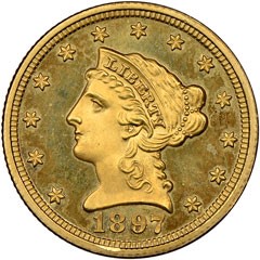 精制币的镜面底板非常容易产生令人生厌的残留物。最近,这枚1897年古典2.5美元精制鹰洋被提交至NCS进行养护,旨在去除在这枚硬币的镜面底板上所形成的厚厚残留物。当人们想到精制币时,最明显的特征便是那闪闪发亮的镜面底板。然而在这枚硬币上,由于产生了非常多的残留物,底板被完全覆盖住了,乍看之下,还以为这枚币不是精制的。
